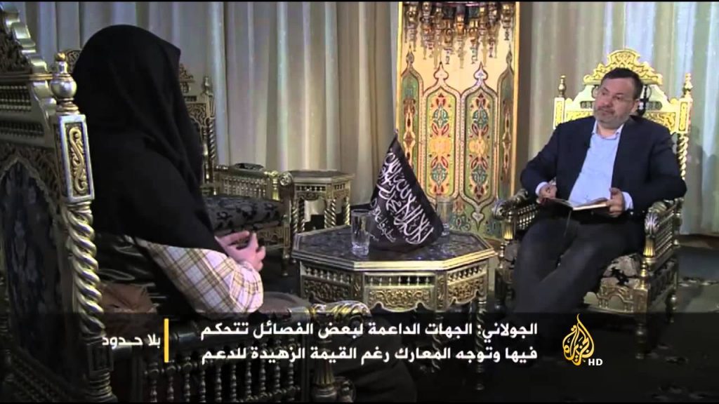 حتى نصل إلى لقاءات الجزيرة المتكررة مع ابن لادن وغيرة من قيادات الجماعات المتطرفة حتى نصل إلى أبو محمد الجولاني.