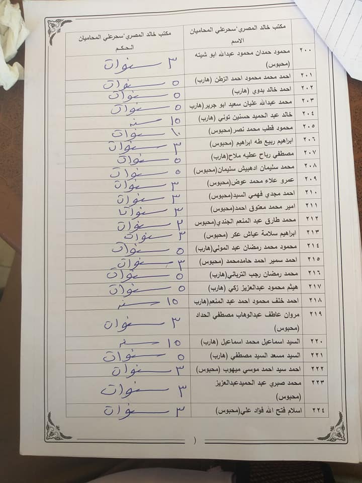كما عاقبت 81 متهما بالسجن المشدد لمدة 5 سنوات وبالمشدد لمدة 3 سنوات لـ 117 متهماً، وقضت ببراءة متهمين اثنين وانقضاء الدعوي القضائية لمتهم واحد للوفاته.