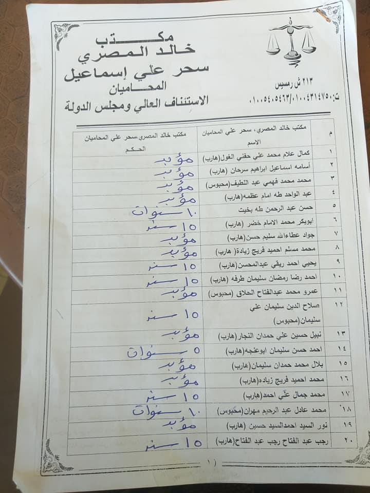 عاقبت 32 متهماً بالسجن المؤبد وعاقبت 29 متهما بالسجن المشدد لمة 15 عام وعاقبت 36 متهما اخرين بالسجن المشدد لمدة 10 سنوات وبالسجن المشدد لمدة 7 مشدد لمتهم واحد.