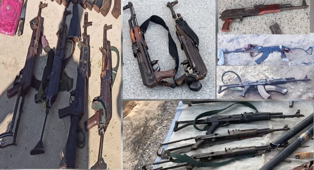 كما تم ضبط 73 بندقية آلية و140 خزنة و5606 طلقة متعددة الأعيرة، و34 جهازا لاسلكيا وطائرة درون مجهزة بكاميرا للتصوير وجهاز رؤية ليلية، بالإضافة إلى جهاز كمبيوتر محمول وعدد من الهواتف المحمولة ومجموعة من المبالغ المالية.