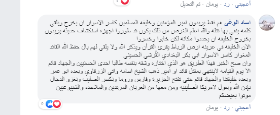 بعدما نشر خالد الزعفراني الباحث في شئون الجماعات الإسلامية والقيادي الإخواني المنشق، تعليقاً على مقتل البغدادي، بدأت الكتائب الإلكترونية للتنظيم الإرهابي الهجوم عليه، ووصل الأمر إلى التهديد بالقتل.
