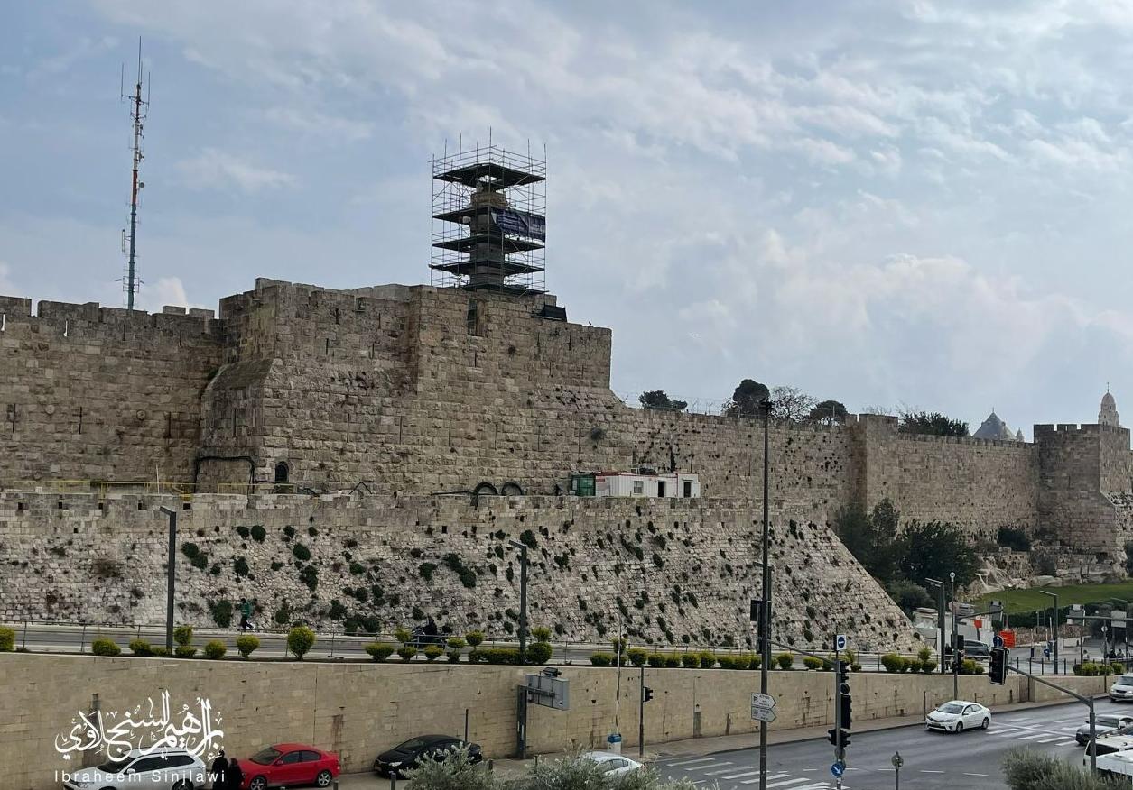 وثق مقدسيون صباح اليوم اختفاء قمة وهلال مئذنة قلعة القدس، التي تحيط بها سقائل “الترميم” منذ نصف عام.