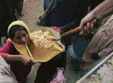 وأنها لم تجد إناءا تجعل فيه الأكل إلا حجابها !