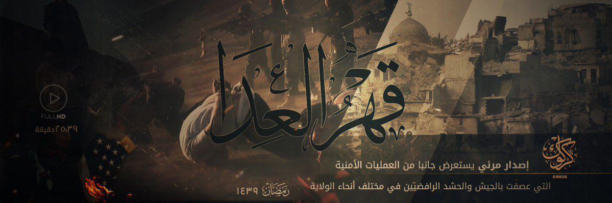 اصدرت داعش ولاية كركوك فجر اليوم الأربعاء  إصدار جديد يحمل عنوان ” قهر العدا” يعرض الإصدار عدد من العمليات الأمنية في كركوك العراق.