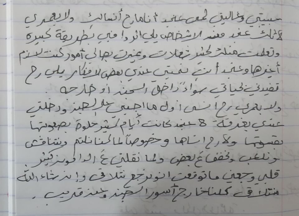 أدركتُ مدى أصالتها ونبل أخلاقها حين بادرتْ مرة إلى الاعتناء بأسيرة مريضة، رغم أن تلك الفتاة أساءت لشروق قبل مرضها بيوم، رأيتُ كيف يتحول الخلاف فجأة إلى مودة حينما يغلّب المرء أخلاقه على الانتصار لنفسه.