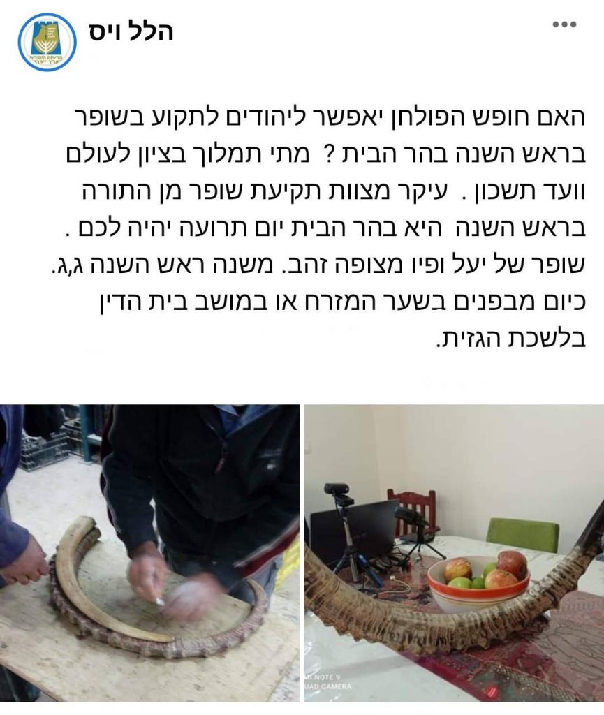المؤسسة الحاخامية المركزية لجماعات الهيكل تعلن عزمها نفخ البوق في المسجد الأقصى في رأس السنة العبرية